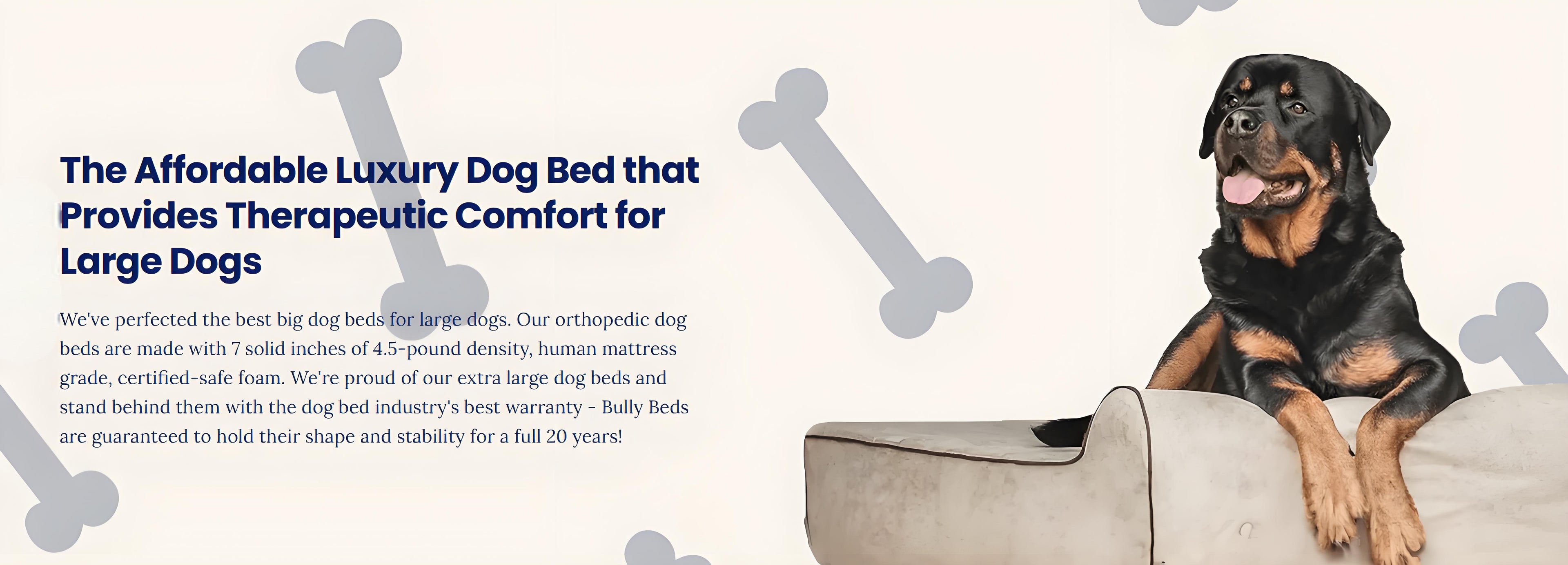 We have large dog bed options to fit the needs of just about any dog. Whether you need an orthopedic dog bed, a chew-resistant bed for aggressive chewers, or state-of-the-art infrared technology for overall wellness, there a Bully Beds Dog Bed to meet your needs.