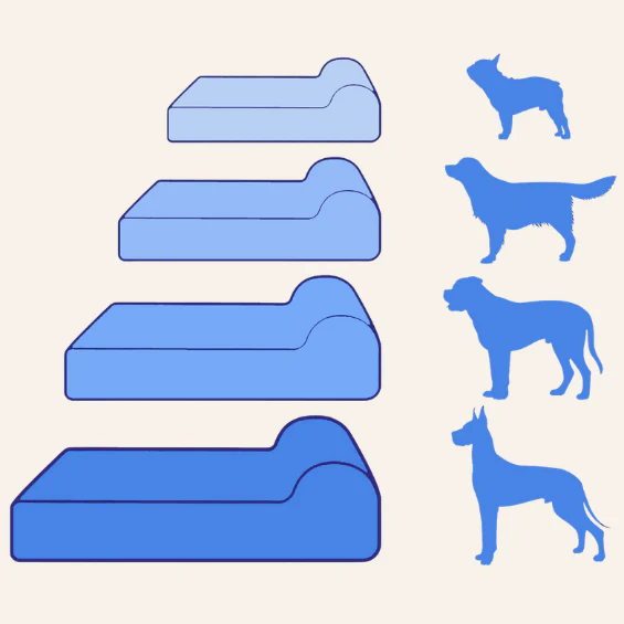 We offer a convenient sizing chart to help you find the perfect bed to accommodate your dog. Measure your dog from head to rear-end, and then choose a corresponding bed size from the sizing chart.